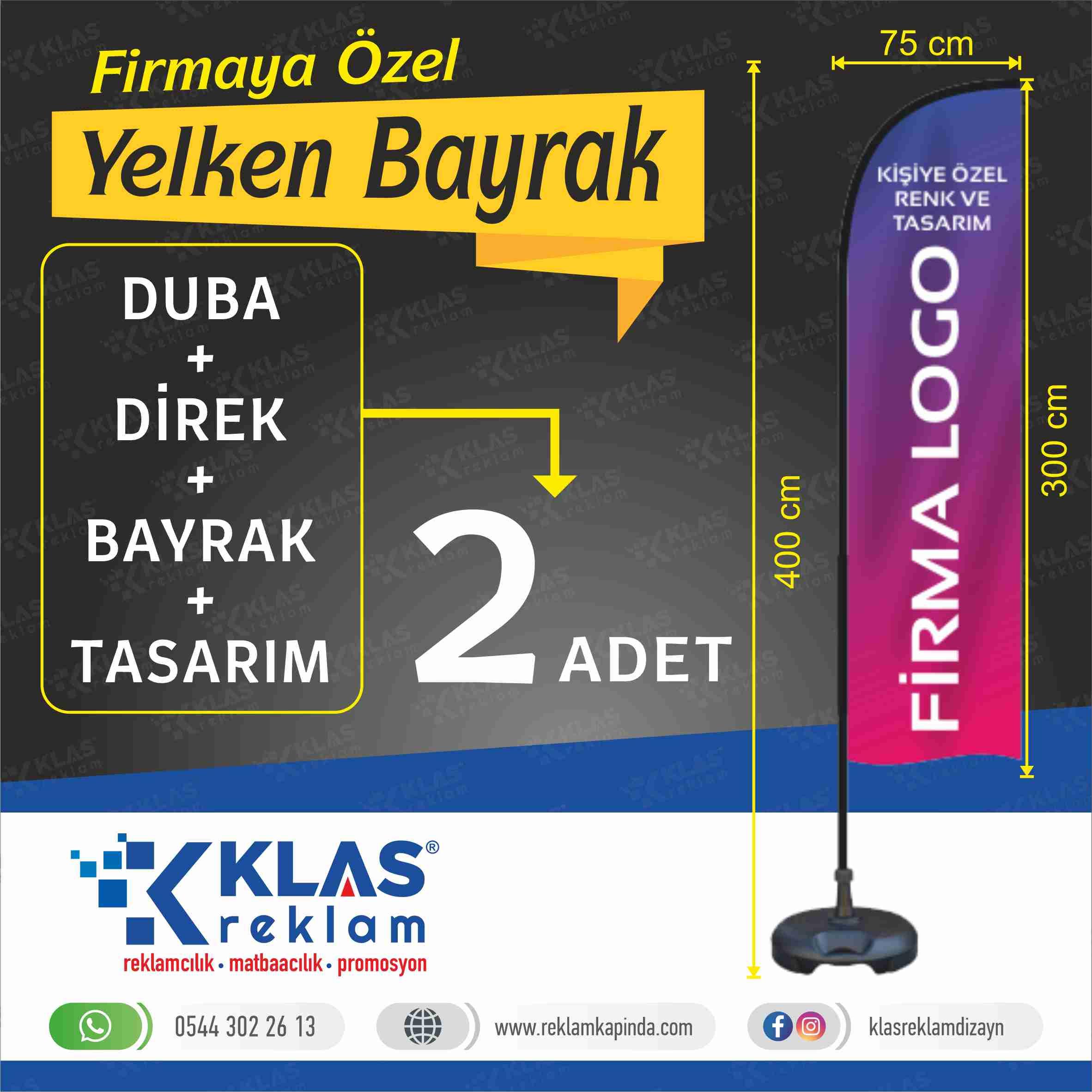 Firmamız tarafından üretilen, özellikle dış mekân çalışmalarında ve tanıtımlarında tercih edilen yelken bayrak, esnek ve dayanıklı yapısı ile güven vermektedir. Dışarıdaki yağmur, kar, rüzgar gibi tabiat olaylarına dayanıklı olması itibariyle uzun yıllar kullanabilen ürünlerden biridir. Yolda yürüyen potansiyel müşterilerinizin dikkatini çekmek amacıyla özenle hazırlanan yelken bayraklar, tek tipte üretildiği gibi aynı müşteri için birden fazla görsellikte de üretilebilmektedir.